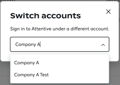 Click the name of your test account. The Attentive platform is now signed in to your test account.