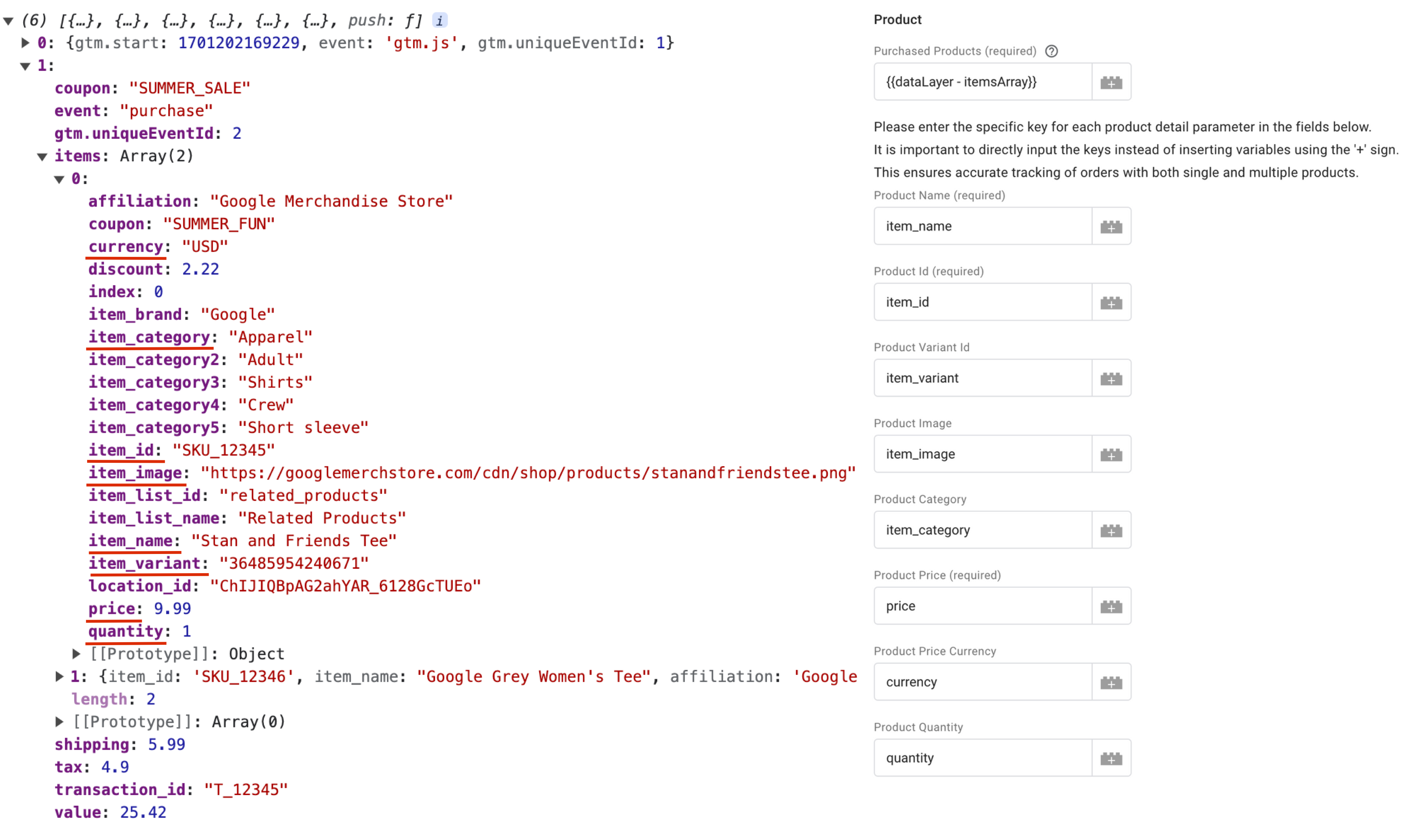 Notes:- It’s important to directly input the keys instead of inserting variables using the '+' sign. This ensures accurate tracking of orders with both single and multiple products.